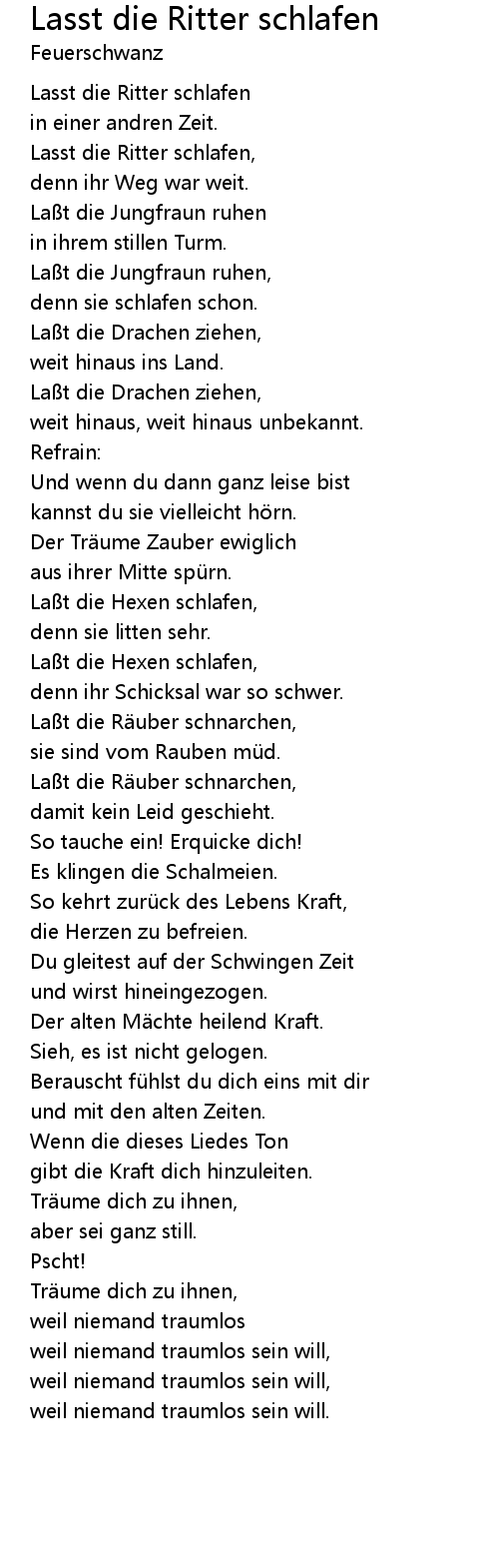 | Lasst die Ritter schlafen, | |