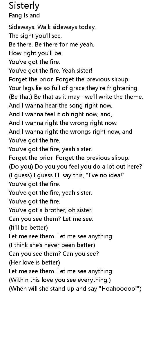 Sisterly 歌词