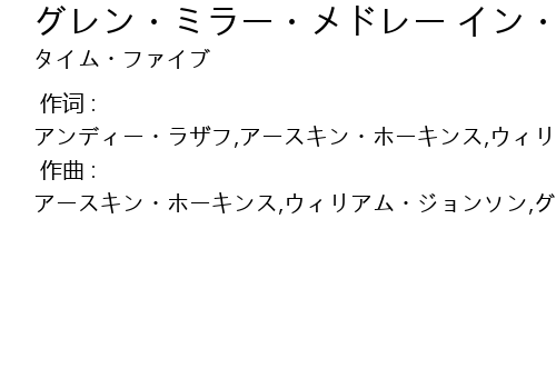 | 歌曲 | グレン・ミラー・メドレー イン・ザ・ムード〜ムーンライト・セレナーデ〜タキシード・ジャンクション |