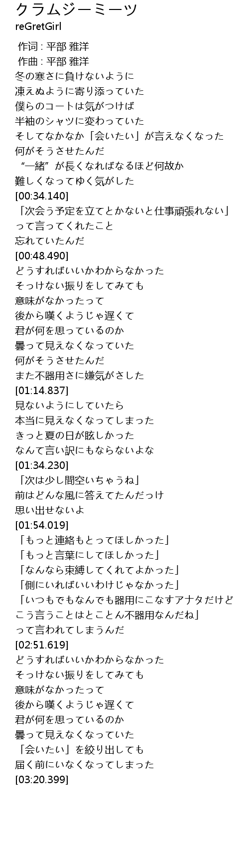 | [00:00.000] | 作词 : 平部 雅洋 |