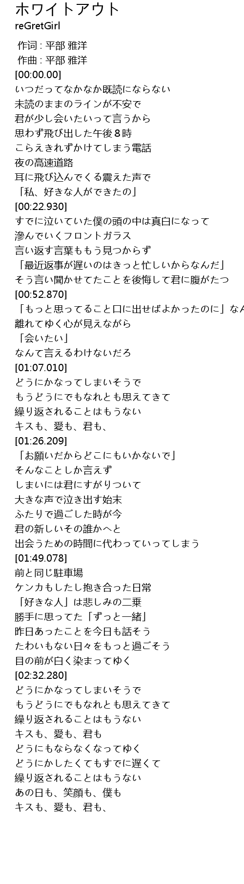 | [00:00.000] | 作词 : 平部 雅洋 |
