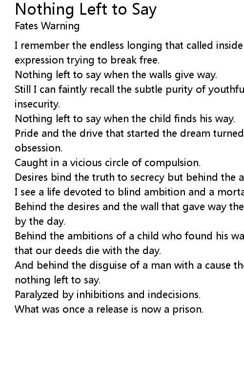 And behind the disguise of a man with a cause there's a child screaming with nothing left to say. |