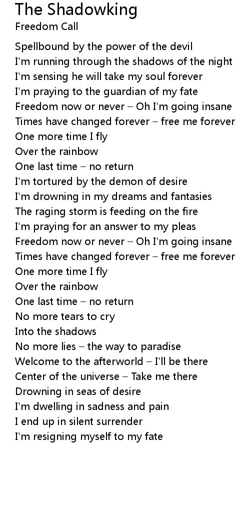 | Freedom now or never Oh I' m going insane | |
