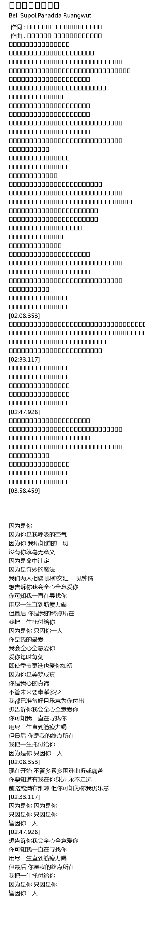 | [02:36.147] | เพราะว่าเป็นเธอ เพราะว่าเป็นเธอ |