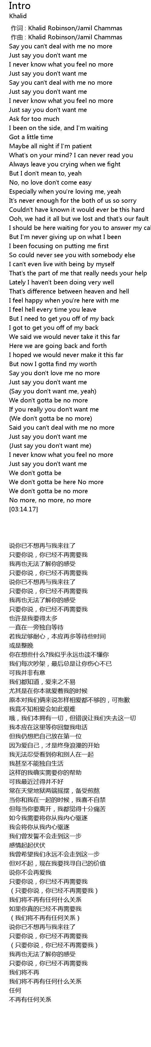 | [00:00.000] | 作词 : Khalid Robinson/Jamil Chammas |