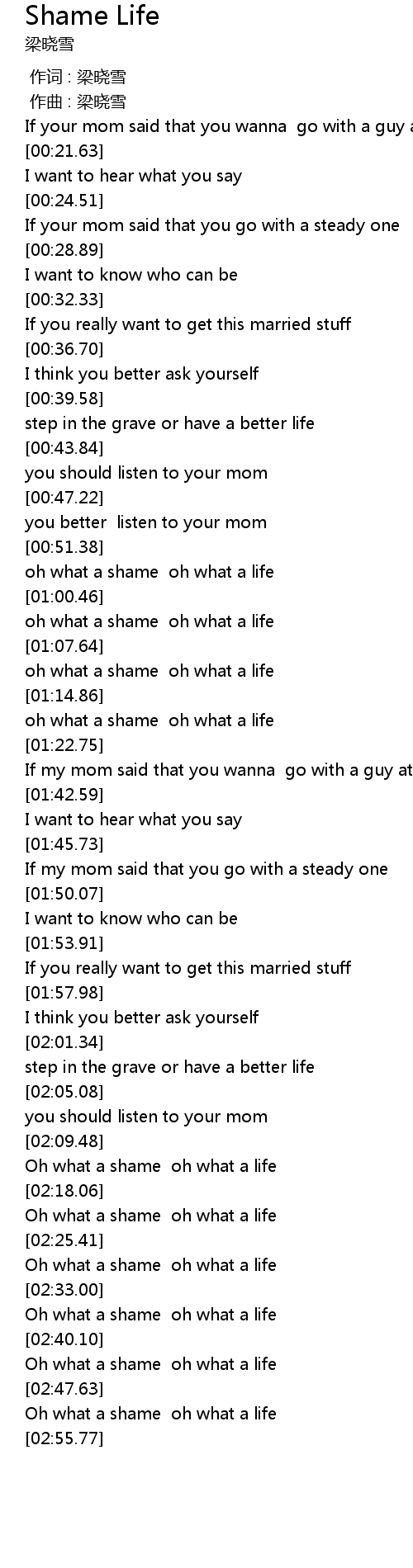 | [02:40.51] | Oh what a shame oh what a life |