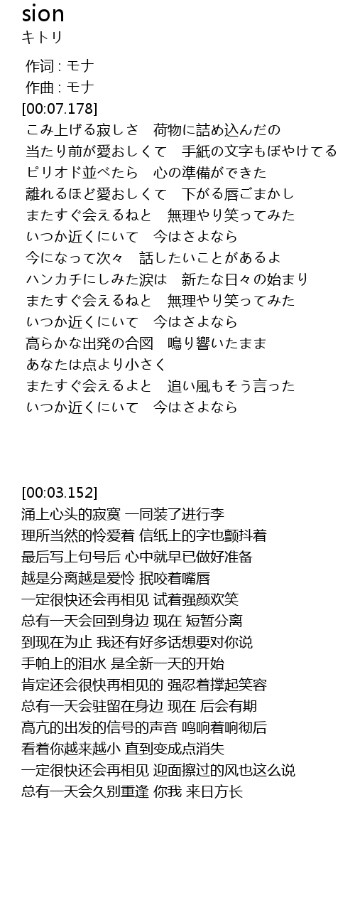 | [02:22.518] | いつか近くにいて 今はさよなら |