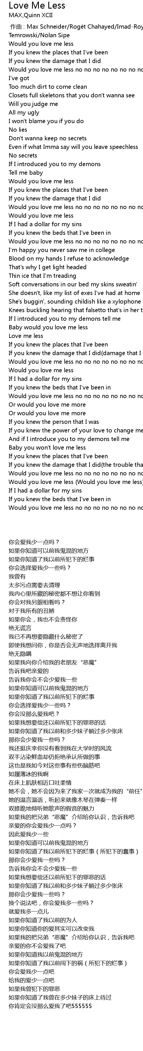 | 歌曲 | Love Me Less |