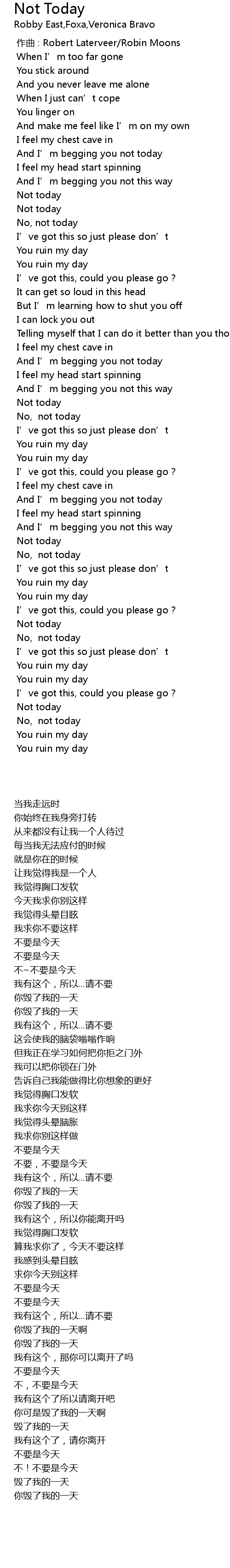 | 歌曲 | Not Today |