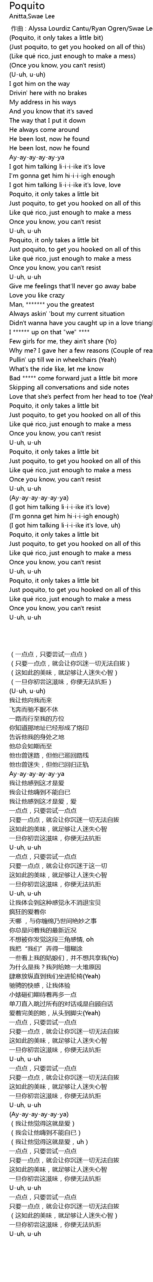 | [00:00.08] | (Poquito, it only takes a little bit) |