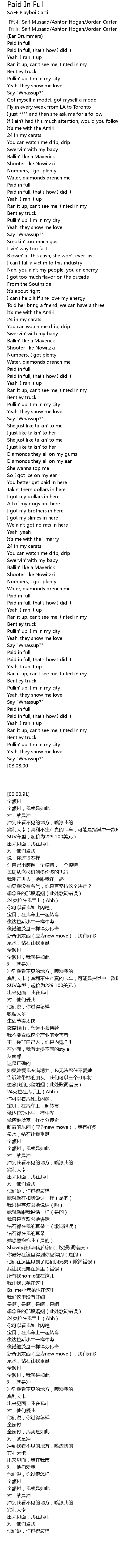 | [00:12.54] | Paid in full |
