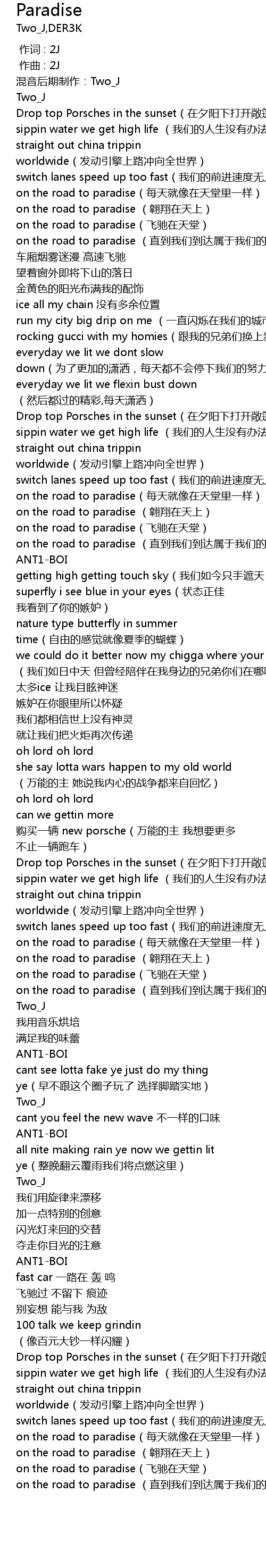 | [00:33.375] | on the road to paradise (直到我们到达属于我们的天堂) |