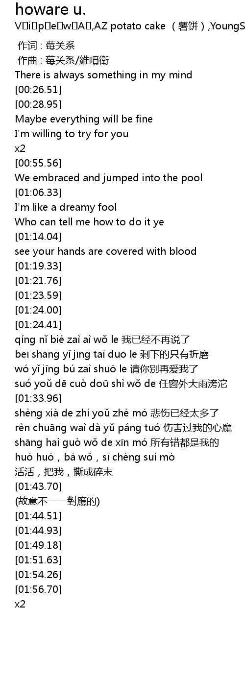 | 歌曲 | howare u. |