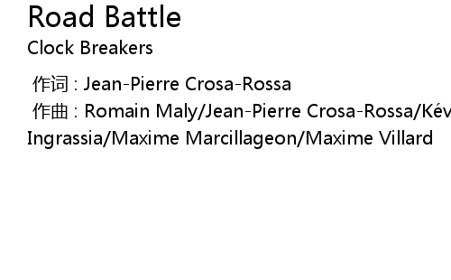 | [00:00.000] | 作曲 : Romain Maly/Jean-Pierre Crosa-Rossa/Kévin Dubey/Florent Ingrassia/Maxime Marcillageon/Maxime Villard |