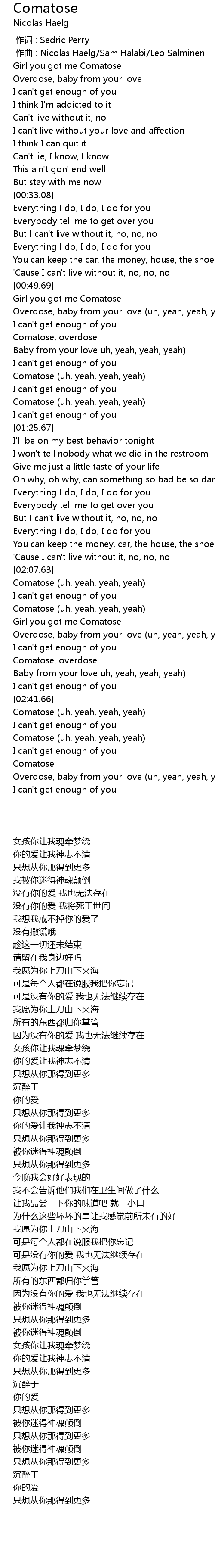 | [00:52.71] | Overdose, baby from your love uh, yeah, yeah, yeah |