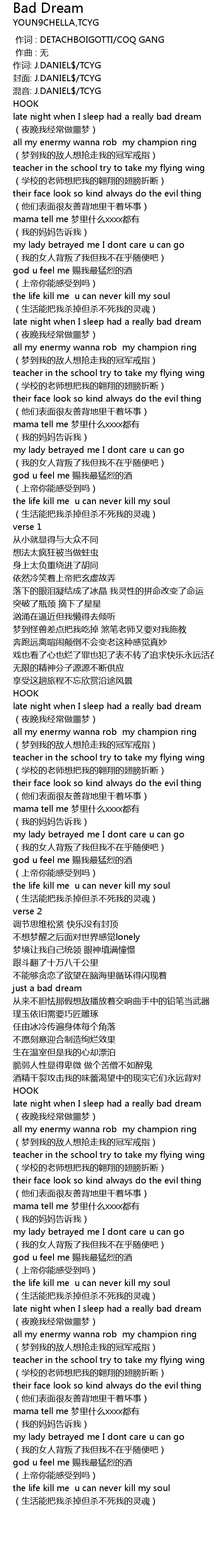 | [00:03.468] | 作词: J.DANIEL$/TCYG |