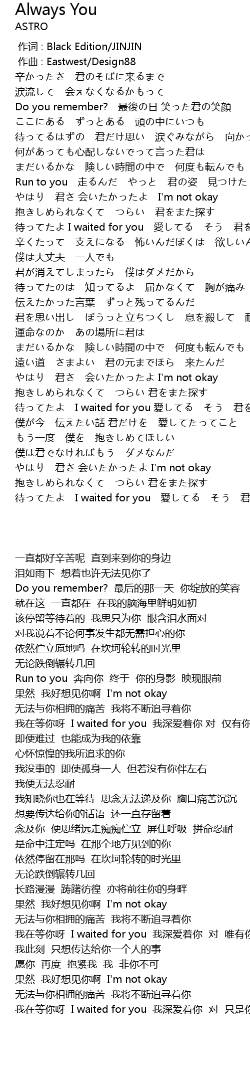 | [00:38.732] | 该停留等待着的 我思只为你 眼含泪水面对 |