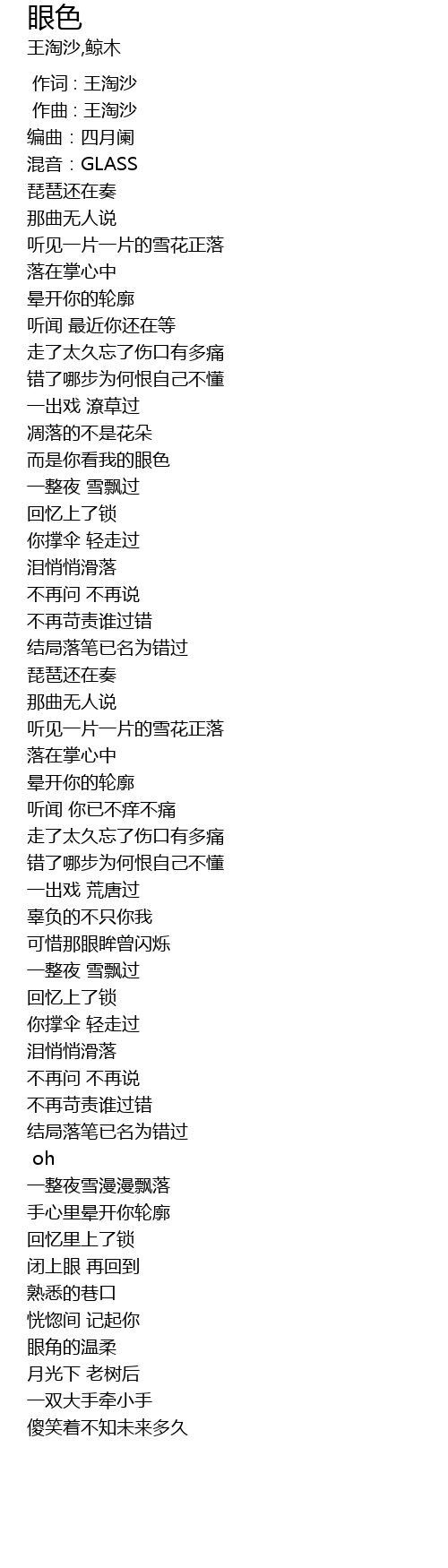 | [01:32.868] | ér shì nǐ kàn wǒ de yǎn sè |