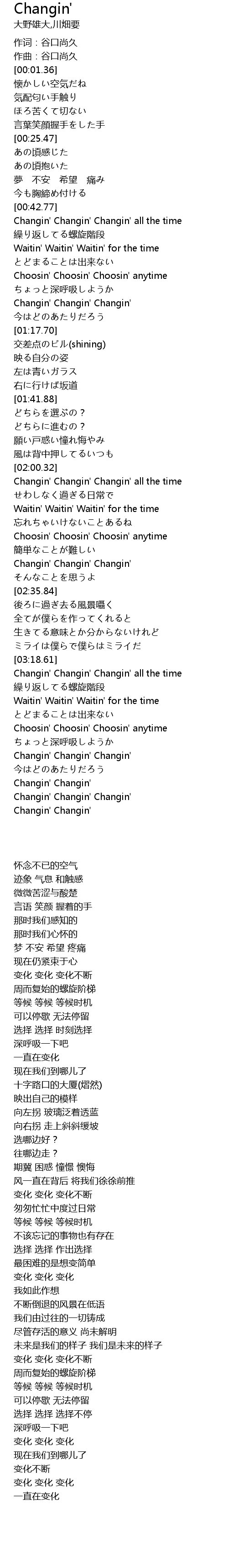 | [00:43.13] | Changin' Changin' Changin' all the time |