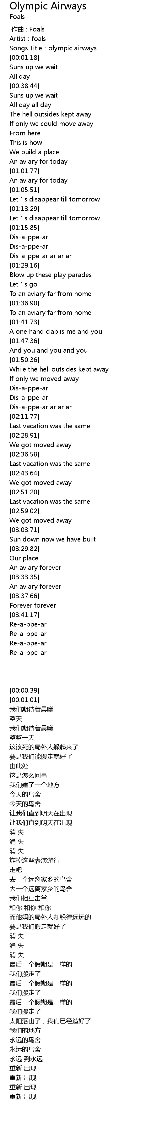 | [00:00.39] | Artist: foals |