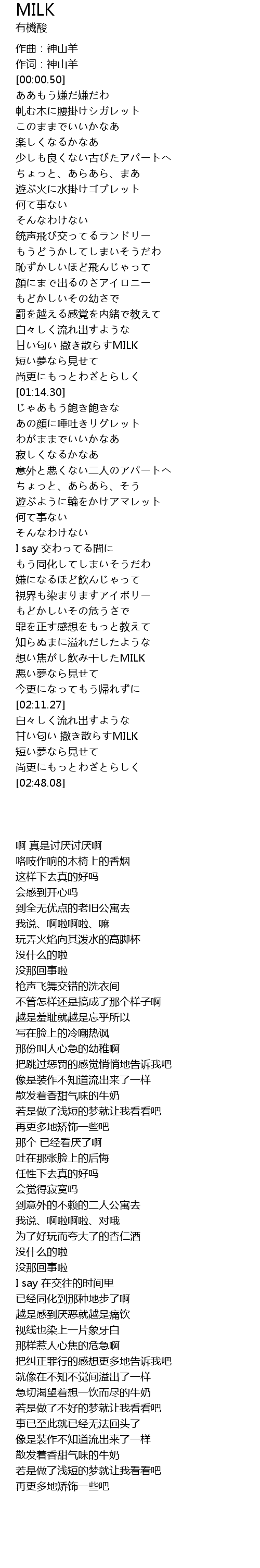 | [02:33.11] | gān bi sā sàn MILK |