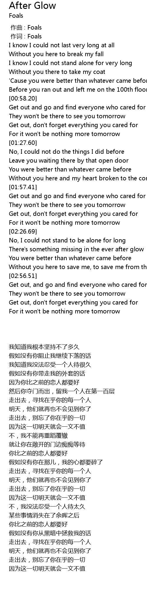 | [00:00.00] | 作曲 : Foals |