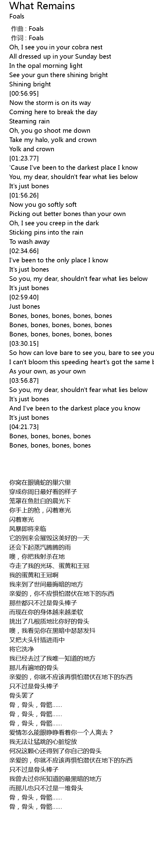 | [03:20.19] | Bones, bones, bones, bones, bones |