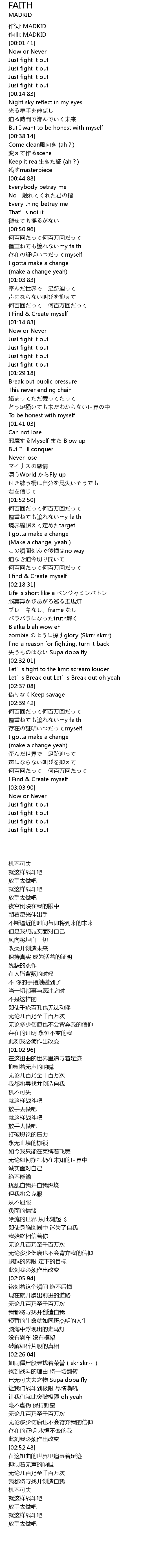 | [00:54.80] | 无论多少伤痕也不会背弃我的信仰 |