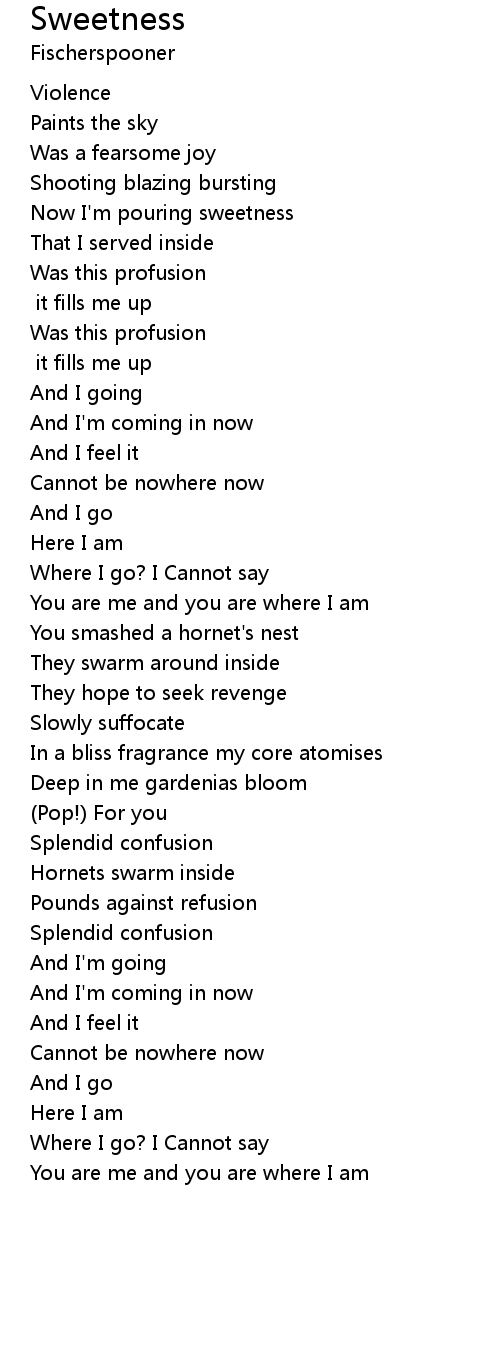Now I'm pouring sweetness |