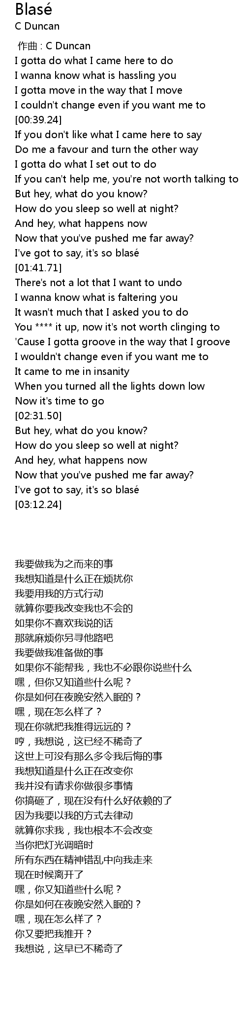 | [00:00.000] | zuò qǔ : C Duncan |