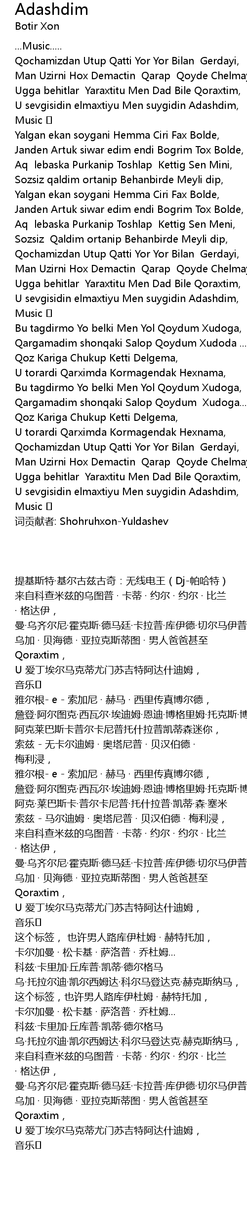 | [03:32.41] | 词贡献者: Shohruhxon-Yuldashev |