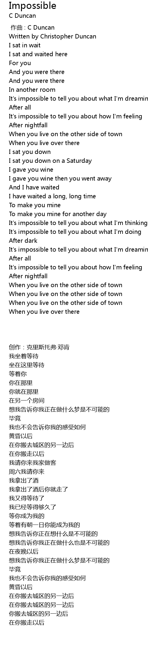 | [00:08.10] | 创作:克里斯托弗·邓肯 |