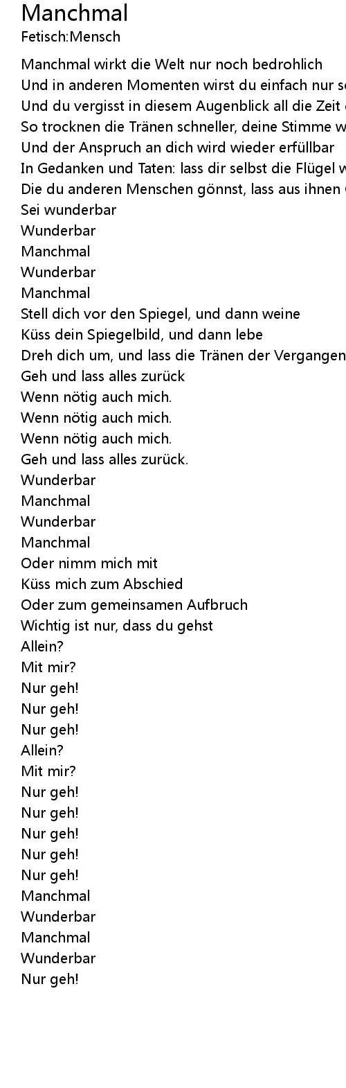 | So trocknen die Tränen schneller, deine Stimme wird fester | |