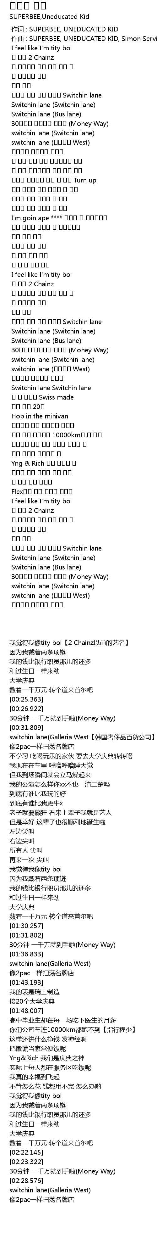 | [00:00.000] | 作词 : SUPERBEE, UNEDUCATED KID |