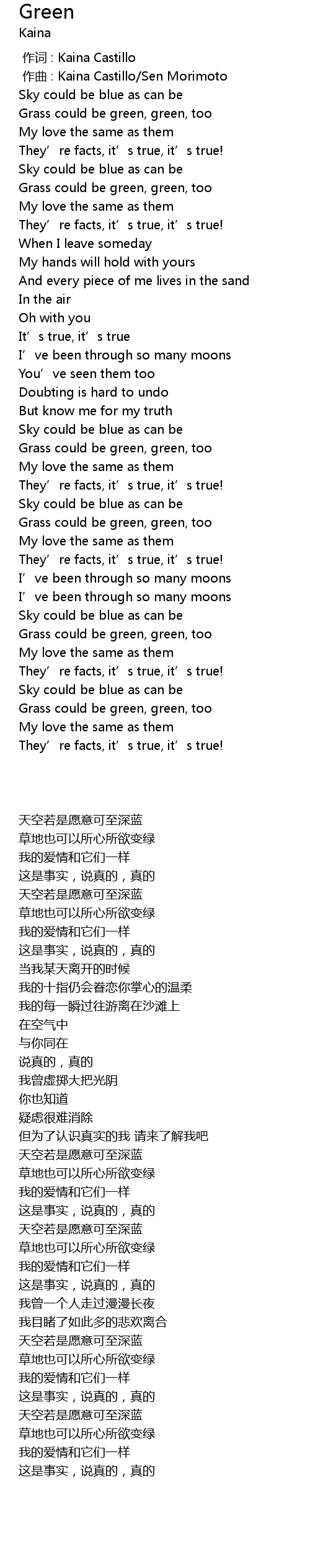 | [00:00.000] | 作词 : Kaina Castillo |