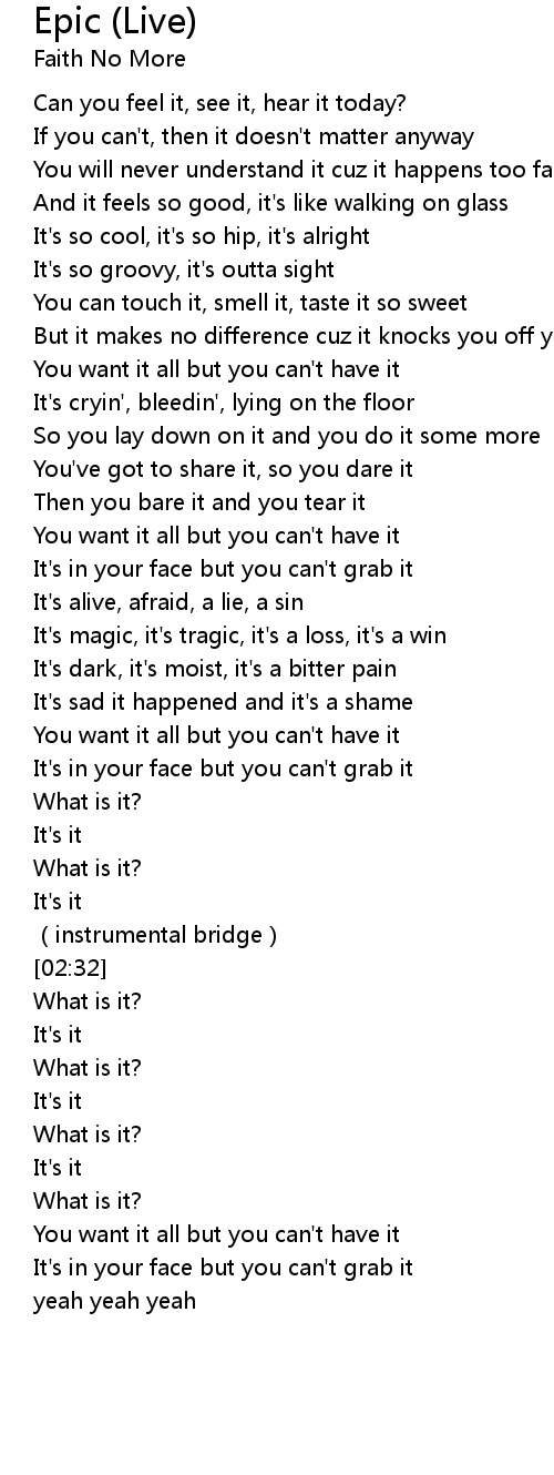 | [01:17] | It' s alive, afraid, a lie, a sin |
