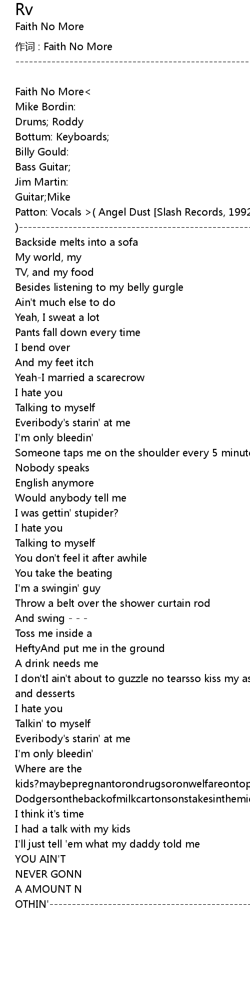 | 作词 : Faith No More | |