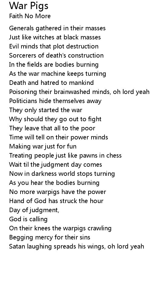 On their knees the warpigs crawling |
