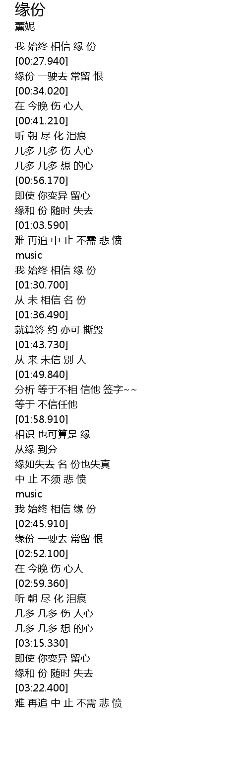| [02:42.100] | 我 始终 相信 缘 份 |