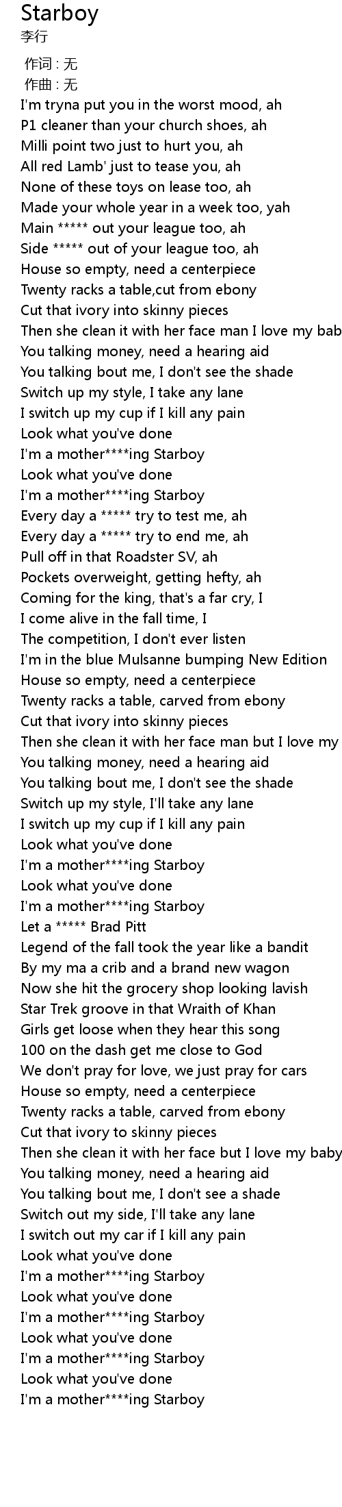 | [00:15.881] | I' m tryna put you in the worst mood, ah |