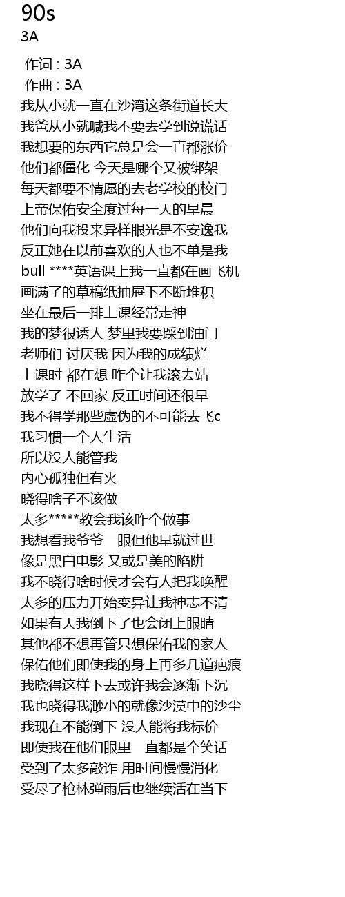 | [00:00.000] | 作词 : 3A |