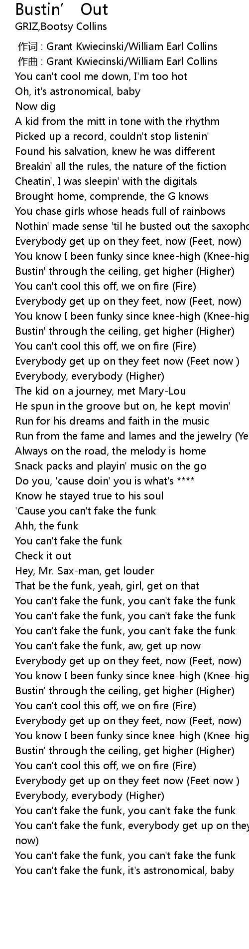 | [02:58.560] | You can' t fake the funk, everybody get up on they feet, now Feet, now |