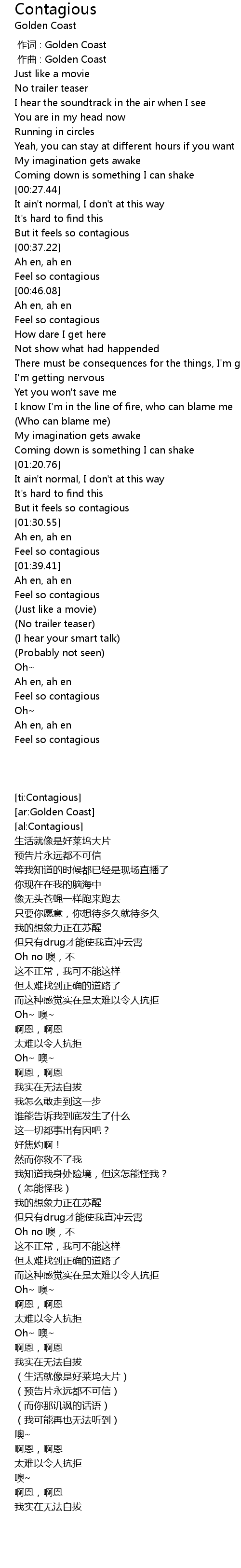 | [01:36.90] | Feel so contagious |
