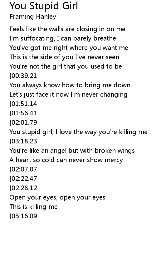 | [03:10.51][02:07.07] | You stupid girl, love the way you're killing me |