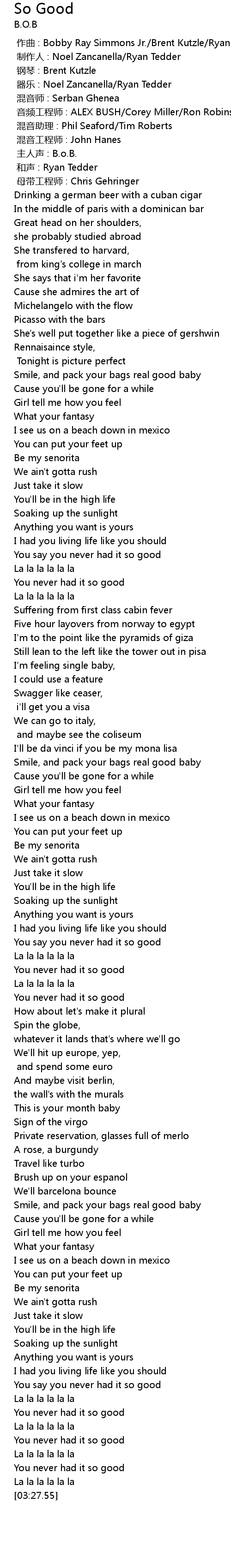| [00:08.000] | 主人声 : B.o.B. |