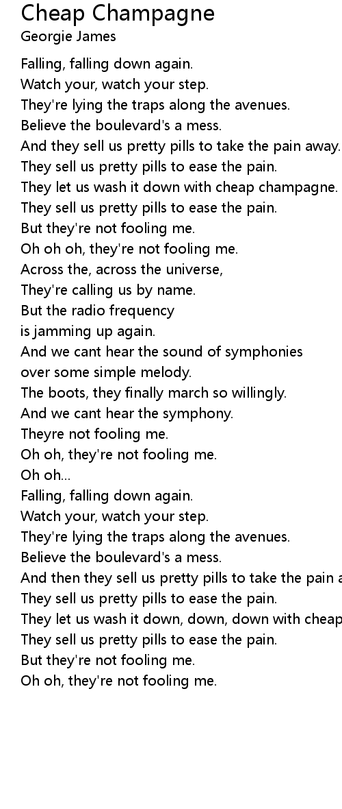 They let us wash it down, down, down with cheap champagne. |