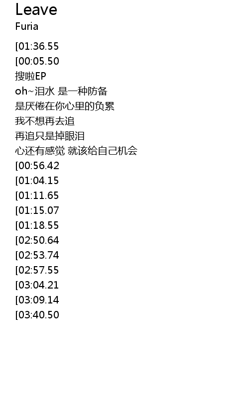 | [03:19.29][02:50.64][01:25.96] | 离开后才能勇敢追 |