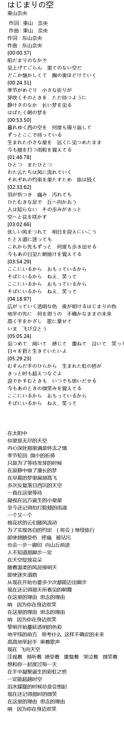 | [00:00.00] | 作词:东山奈央 |
