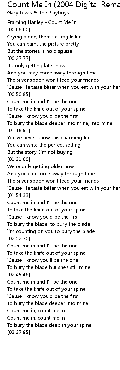 [00:02.00] Framing Hanley - Count Me In