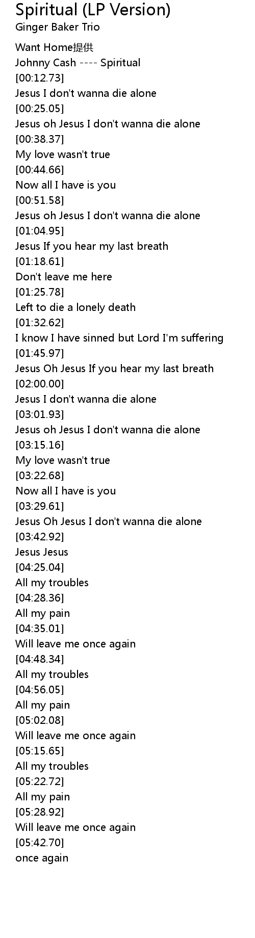 | [00:13.72] | Jesus I don' t wanna die alone |